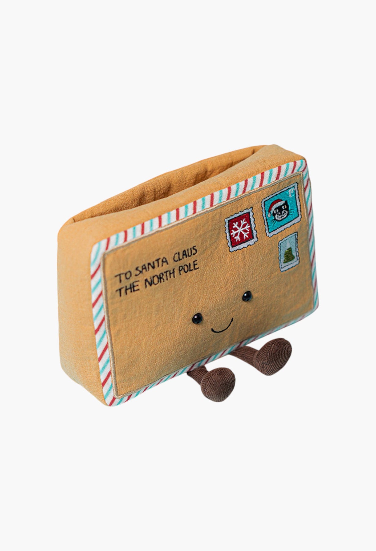 Amuseables Letter to Santa is a true believer in Christmas miracles. This charming Santa Toy is on a quest for them, in fact!
