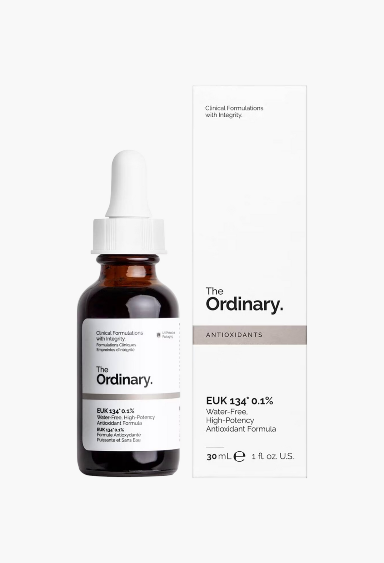 L'EUK 134 0,1 % de The Ordinary est un mimétique de la superoxyde dismutase et de la catalase, formant une molécule auto-régénératrice exceptionnellement rare qui neutralise les radicaux libres superoxydes, élimine le peroxyde d'hydrogène et convertit les espèces réactives de l'oxygène en eau et en oxygène. Bien qu'il existe depuis de nombreuses années, très peu de produits sur le marché utilisent cet antioxydant remarquable capable de se régénérer pour offrir une protection antioxydante continue. Le seul inconvénient de l'EUK 134 est qu'il ne doit pas être utilisé immédiatement avec des acides forts tels que les suspensions d'acide ascorbique. Les acides forts détruisent complètement l'EUK 134, qui est à base de manganèse.